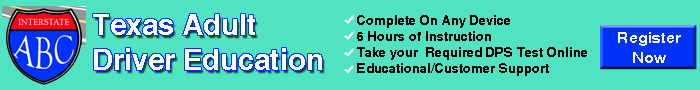 ABC Driving School offers the state-required six-hour adult driver education course for adults 18 to 24 needing a driver license. Programs are provided in classroom and one-on-one formats or on the Internet. Training is available in English or Spanish and in formats to help individuals that have difficulty reading or are complete nonreaders. Upon completion, graduates are provided a state certificate for submission to the Texas Department of Public Safety Driver License Office.